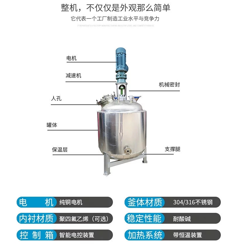 反应釜的结构与性能:设备主要由罐体、夹套、搅拌系统三大部分组成